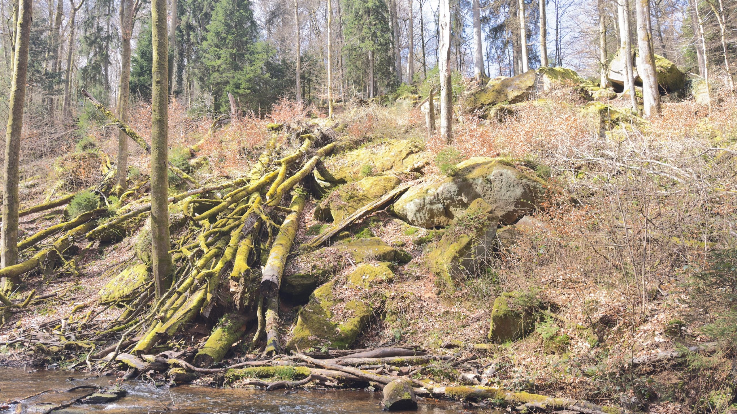 Das Karlstal ist eine der schönsten und wildromantischsten Schluchten im Pfälzerwald – und liegt ganz in deiner Nähe bei Trippstadt. Es ist ein echtes Natur-Highlight für Wanderer, Fotografen und alle, die Ruhe suchen.